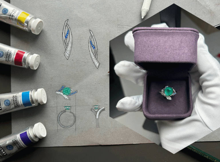 Chaque pièce commence par un croquis, inspiré par  une pierre et l’envie de transmettre une émotion